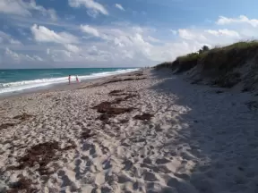 Limestone rocks that spurt water when the waves are 4-6 feet, a path through twisty trees to the beach, a visitor center, and a loop hike by the intracoastal.