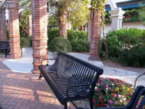 A happening spot with a sunken amphitheater by the water where kids can run in a splash pad and fountains are lit up at night. BurgerFi, Subculture Coffee, and a few restaurants.