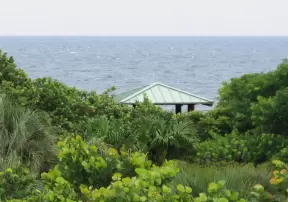 Beach with technicolor blue-green water sometimes, and a huge shady picnic pavilion where neighbors gather to watch the water, on beautiful Jupiter Island.