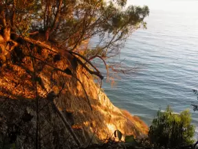 A walk along a clifftop to a popular surfing area with gorgeous sand dunes and exotic plants.
