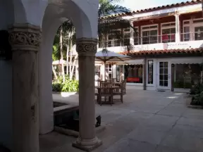 A sumptuous street with Spanish archways and courtyards and unique shops for the extremely rich.