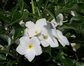 Paradise of plumeria trees and bright bougainvillea in summer.