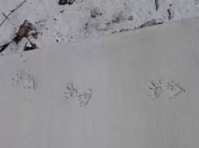 Across the street from the lighthouse, a paved nature walk with animal prints in the concrete and lovely lookout area at the end.