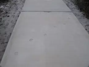 Across the street from the lighthouse, a paved nature walk with animal prints in the concrete and lovely lookout area at the end.