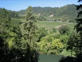 A wide, pebbly shore where you can enter the Russian River on kayak or paddleboat, have a beer, or walk the historic Guerneville Bridge.
