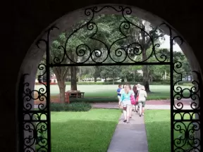 Walk through a paradise of old oak trees strung with moss. The new Marine Science building is gorgeous, but the older buildings are unattractive and musty.
