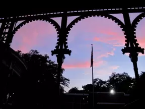 Walk along Celebration Blvd at sunset, enjoying the Art Deco buildings.