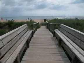 Pretty beach where you can take a long walk along the shore, or along the sidewalk in the morning.