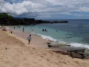 Beautiful beach, sometimes sandy sometimes rocky, with dangerous shorebreak enjoyed by teens and other daredevils.