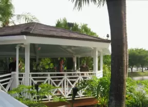 Magical spot with white sand beach on the river, coconut trees galore, views of the Ernest Lyons Bridge, and shady playground with tall, tall slides!